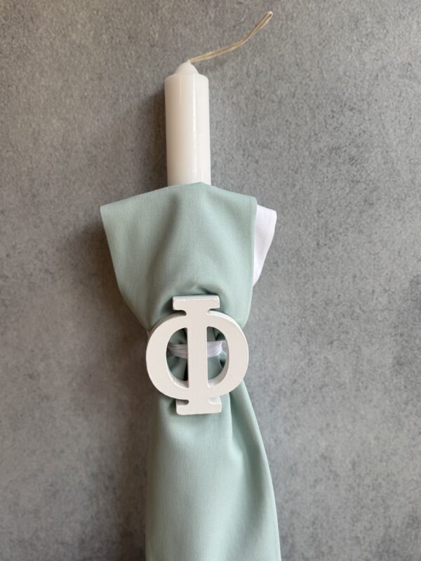 -Λαμπάδα βάπτισης με ξύλινο μονόγραμμα και κορδέλες. 125€
