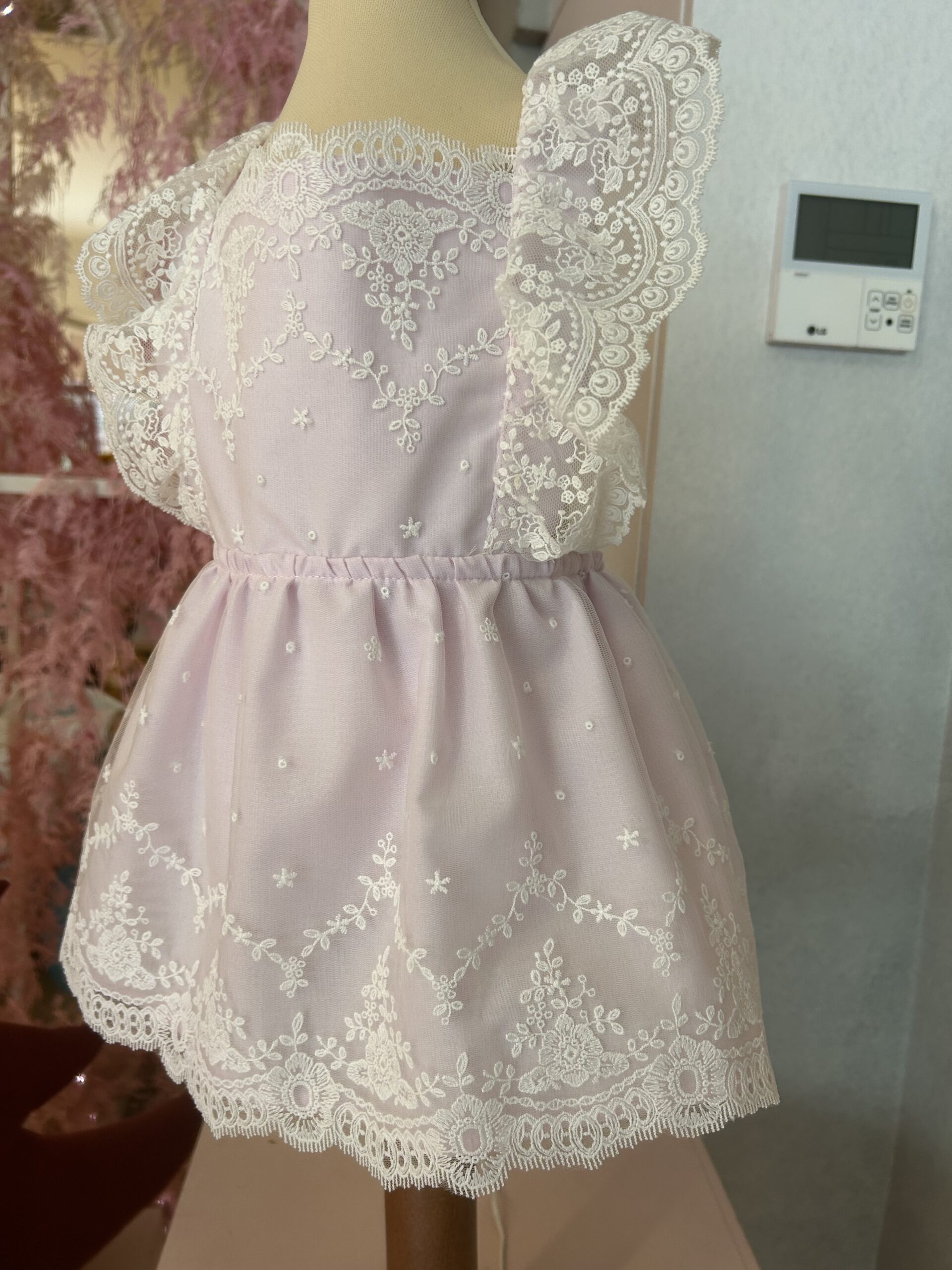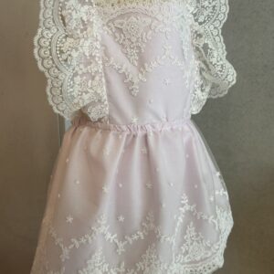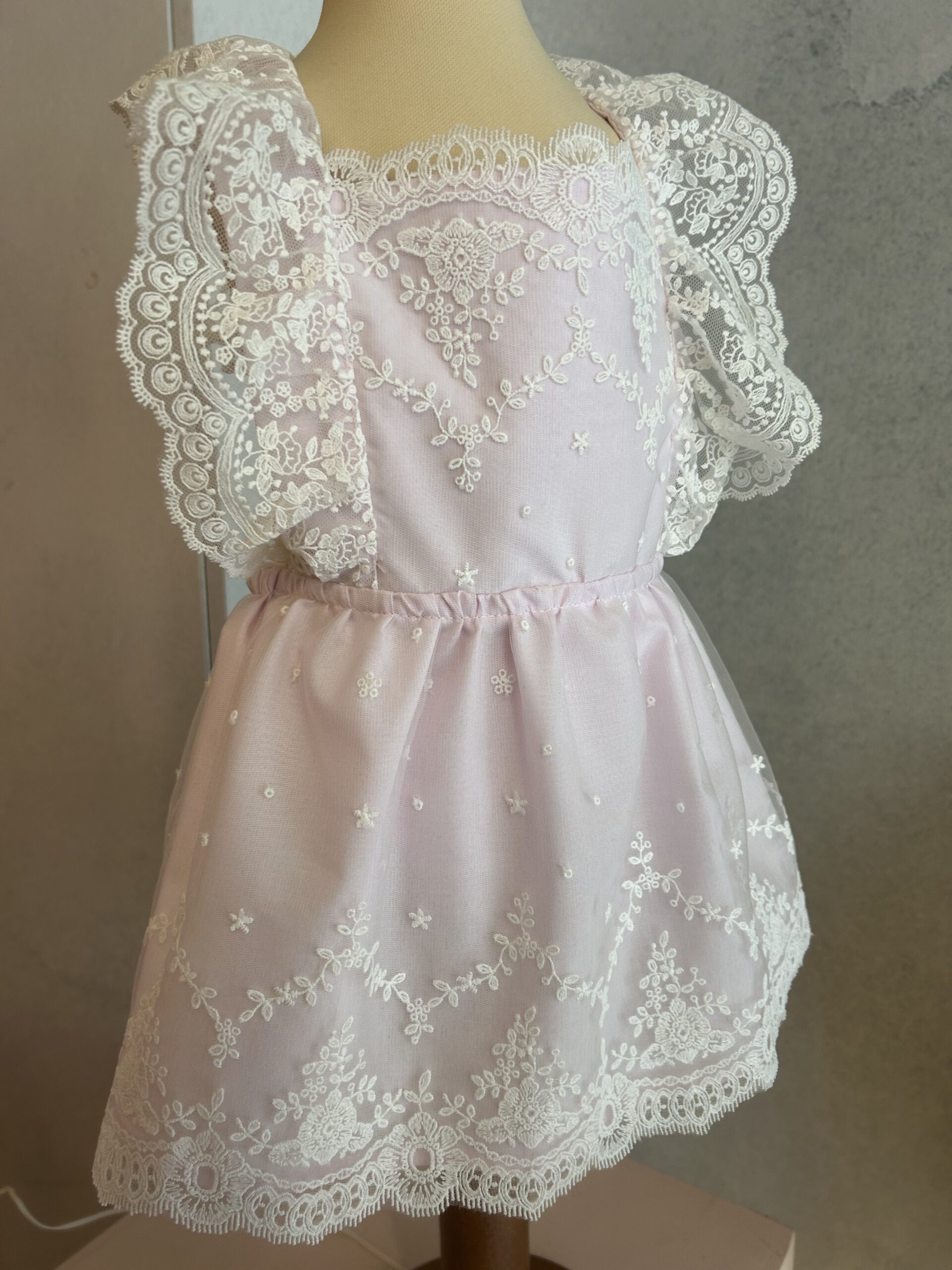 Βαπτιστικό φόρεμα με χιαστί τιράντα και βολάν με δαντέλα, με το πιο ιδιαίτερο πουδρένιο χρώμα! Με την υπογραφή Sugar Pillow. Ιδανικό για ηλικίες κάτω των 18 μηνών. Μπορείτε να το επιλέξετε να φορεθεί και για πριν τη βάπτιση. Συνδυάζεται με ασορτί φιογκάκι για το κεφάλι.
