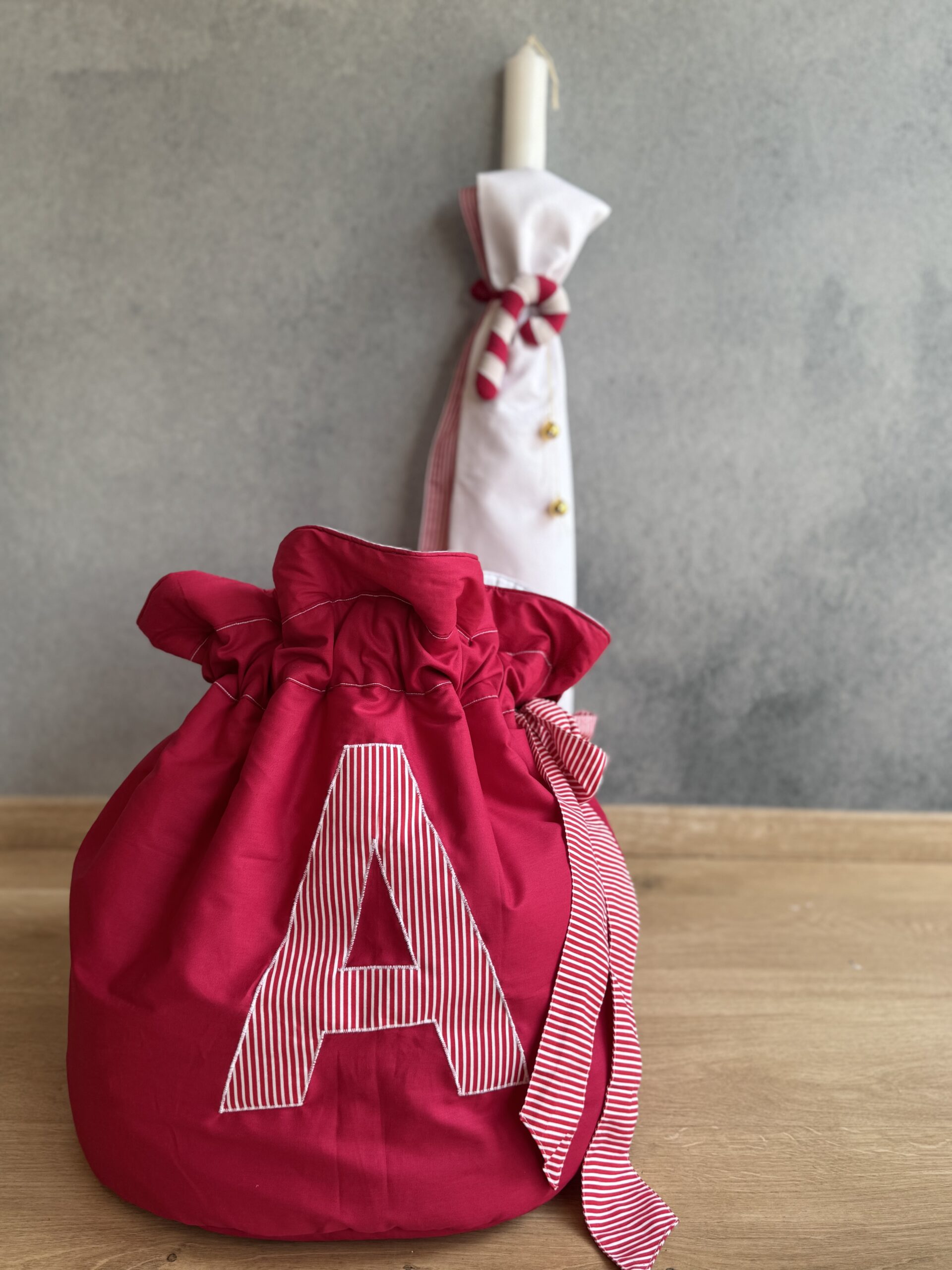 Υφασμάτινο χειροποίητο σάκο με μονόγραμμα (150€)